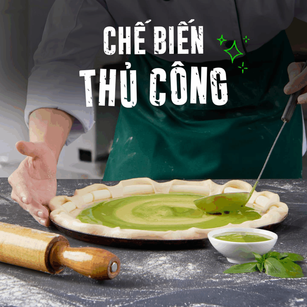 🌿 Lấy cảm hứng từ ẩm thực miền Bắc nước Ý, chúng tôi sử dụng lá húng quế tây tươi, dầu ô liu hảo hạng kết hợp cùng tinh hoa nguyên liệu Việt Nam - Hạt điều đặc sản Bình Phước, tạo nên loại xốt xanh đậm vị, tươi mới, thơm lừng, chính là linh hồn của chiếc Pizza đã chinh phục hàng triệu tín đồ ẩm thực ngay từ những ngày đầu ra mắt.